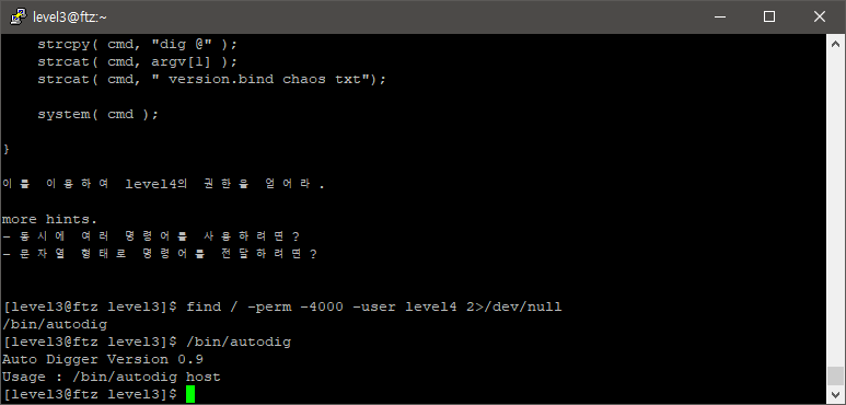 ์ด๋ฅผ ์ด์ฉํ์ฌ level4์ ๊ถํ์ ์ป์ผ๋ผ๊ณ ํ๋ค์.