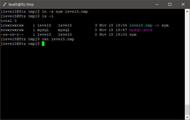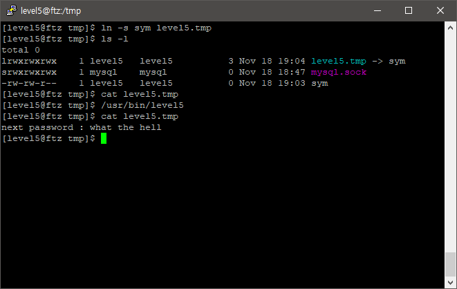 ๊ทธ ๋ค์ ๋ค์ symํน์ level5.tmp ํ์ผ์ ๋ด์ฉ์ ์ถ๋ ฅํด ๋ณด๋ฉด