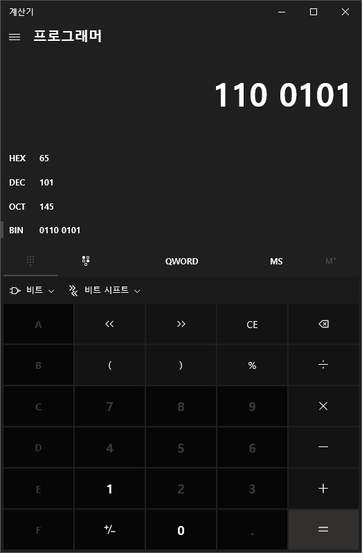 ์ด์ง์๋ก ๋ณํํด์ ์๋์ฐ10 ๊ณ์ฐ๊ธฐ ์ค ํ๋ก๊ทธ๋๋จธ์ฉ์ผ๋ก ๋ฐ๊พธ์ด 10์ง์๋ก ๋ณํํด ์ฃผ์์ต๋๋ค.