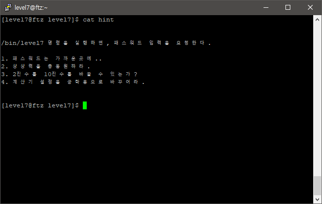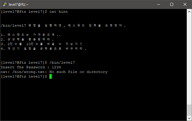 /bin/level7๋ฅผ ์คํ์์ผ ๋ณด์๋๋