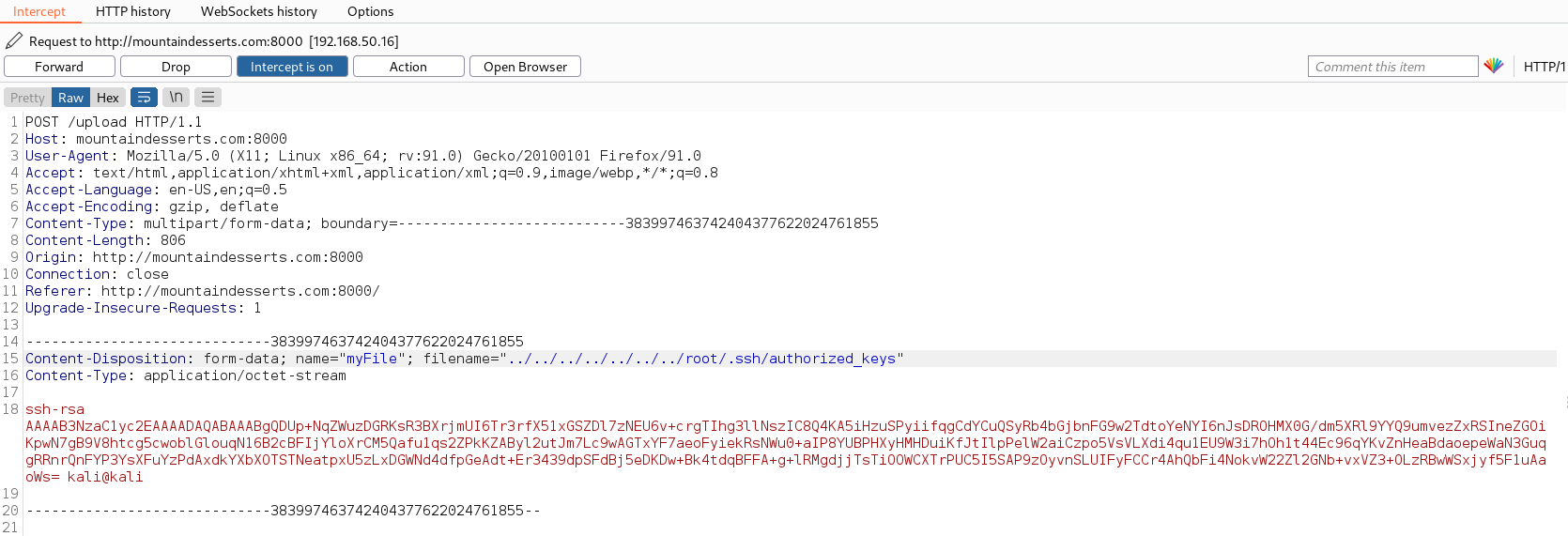 kali@kali:~$ ssh -p 2222 -i fileup root@mountaindesserts.com