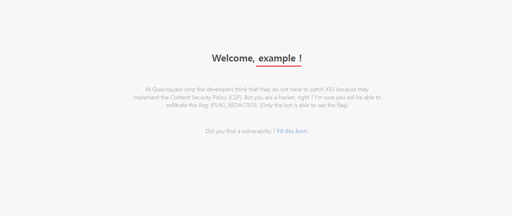 ํ์ด์ง ๋ด์ฉ์ ๋ณด๋ฉด ํ๋๊ทธ ๊ฐ์ด ๋ด๋ง ํ์ธ์ด ๊ฐ๋ฅํ๋๋ก ์ค์ ์ด ๋์ด์๋ค๊ณ ํ๋ค. ๋ํ CSP๊ฐ ์ค์ ์ด ๋์ด XSS๋ ๋ถ๊ฐํ๋ค๊ณ ์ ํ์๋ค.