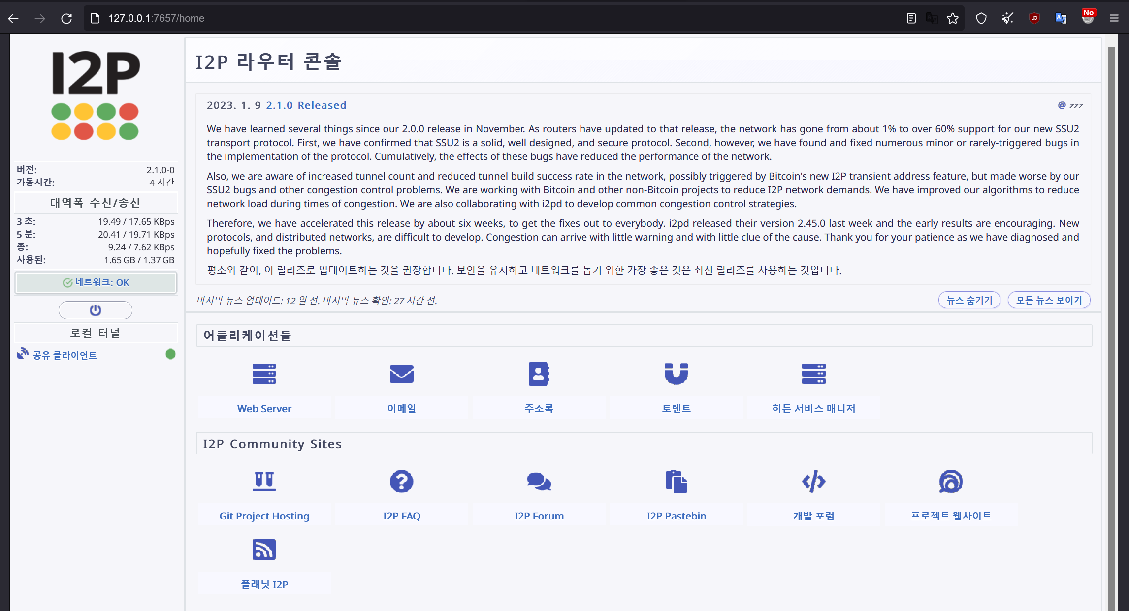 ํ๋ผ์ด๋ฒ์ - Tor ๋ธ๋ผ์ฐ์ ์์ I2P ์ฌ์ฉํ๊ธฐ